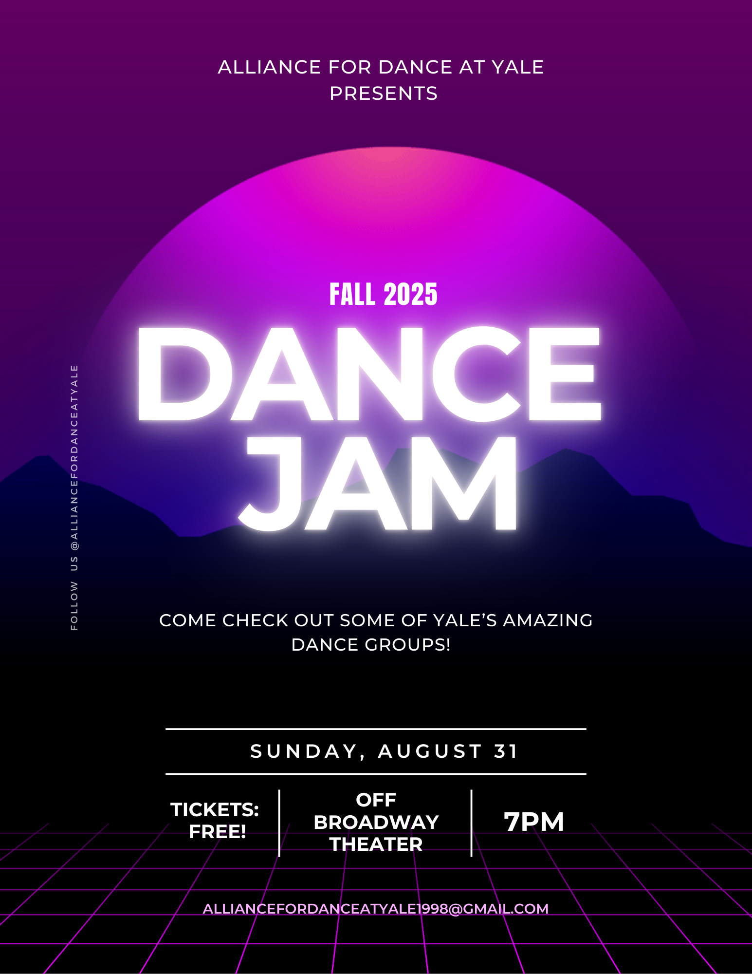 Join us Sunday, August 31st at 7pm in Off Broadway Theater for performances from some of Yale’s amazing dance groups! This event gives dancers on campus the opportunity to see different dance groups and receive information regarding the organization and their audition process. While Dance Jam is mainly catered to first-year students, all are welcome to join!